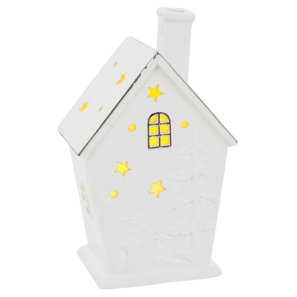 Mr Crimbo Light Up House Christmas Decoration Silver White Ceramic Ornament 20cm