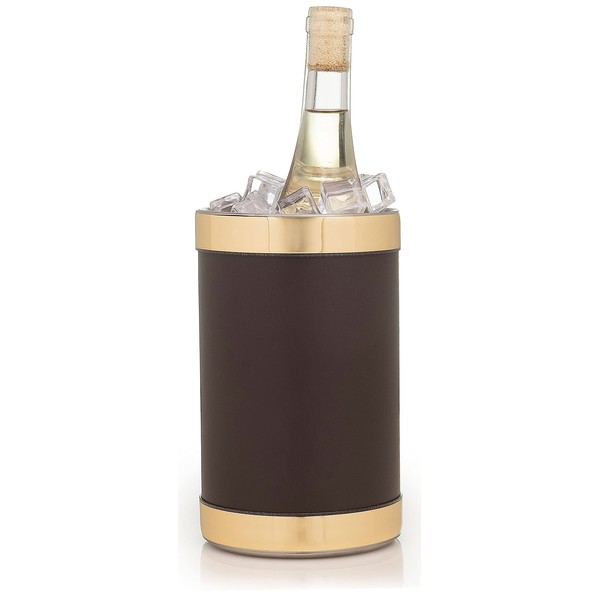 Mr. Ice Bucket By Stephanie Imports Hand Made In USA Double Walled Insulated Wine Chiller (Brown Leatherette)