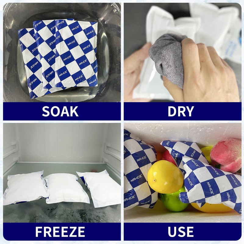 - 【Superior Absorbent & Freezable】 – Soak dry ice packs thoroughly in water for 3 minutes. After the dry ice pack has absorbed all of the water, wipe it dry using a towel. Then place them in the freezer at least 6 hours will be cold better.