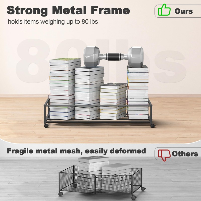 - Stronger Load-bearing Capacity: Made of high-quality metal and Oxford fabric, and reinforced with 4 thickened metal rods at the bottom, our under the bed storage bins offer amazing weight capacity up to 80LBS. Compared with linen storage bins that are easy to tear, our newly upgraded metal under bed storage with wheels and lid are stronger with more weight capacity to meet your long-term storage needs.