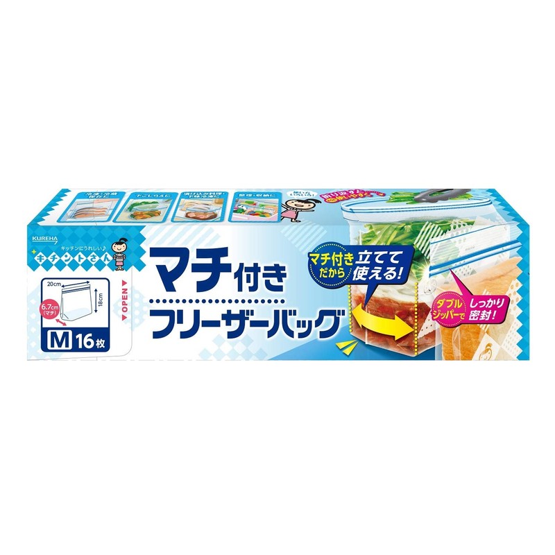 Mr. Kitinto Freezer Bags with Gusset, Medium, 16 Pieces