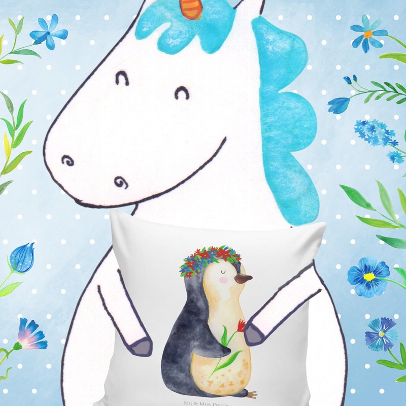 Mr. & Mrs. Panda 40 x 40 cm Penguin Flower Wreath Cushion Cover, Pillow, Targets, Beautiful, Motif Cushion, Self-Love, Life, Gift Idea, Sofa Cushion, Decorative Cushion