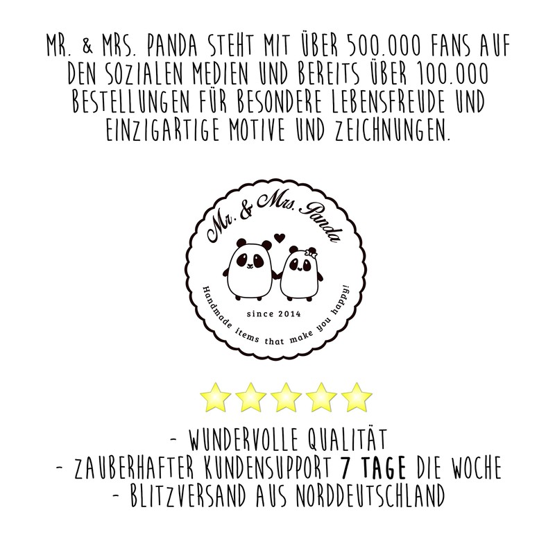Mr. & Mrs. Panda - this is us - a young couple from the north of Germany. Together with our passionate team, we manufacture our products with passion and dedication. The motifs are made by Mrs. Panda designed and drawn and the materials carefully selected by us together. This creates unique products that look for their same. We attach great importance to satisfied customers and personally support each customer.