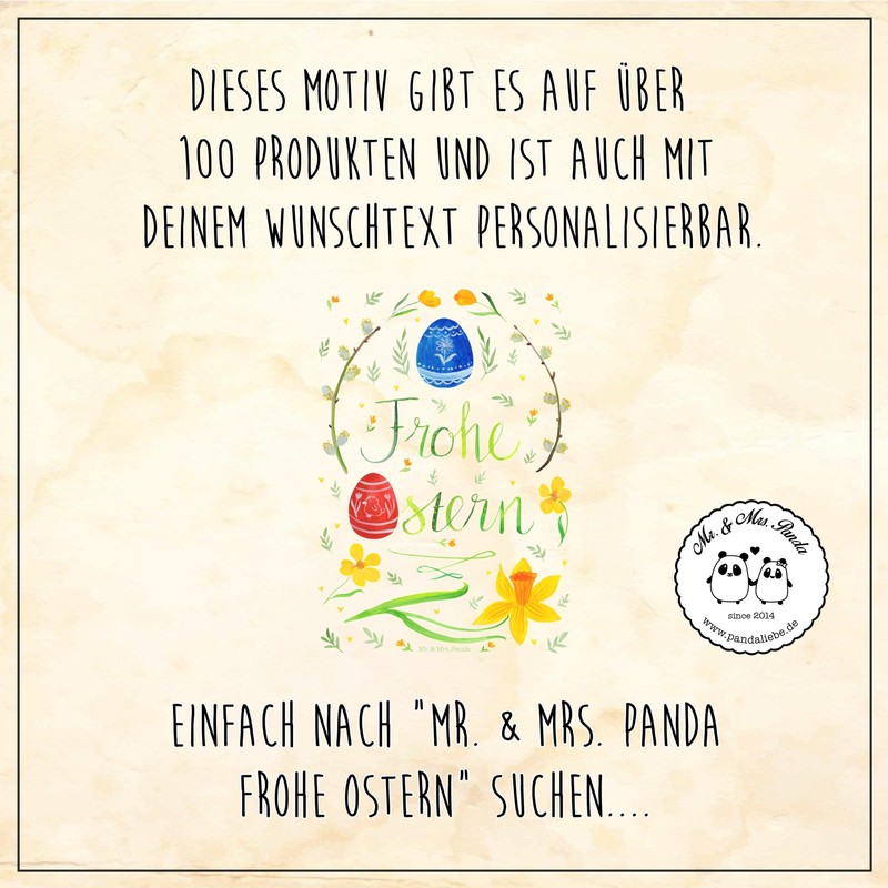 Do you want to make your Easter party particularly beautiful this year? Then the adorable watercolour motif 'Frohe Ostern' by Mr. & Mrs. Panda is definitely not missing. The filigree lettering and the flowers give you the feeling as if you were hiking through a picturesque spring meadow. Give joy with this cute motif that will warm your heart.
