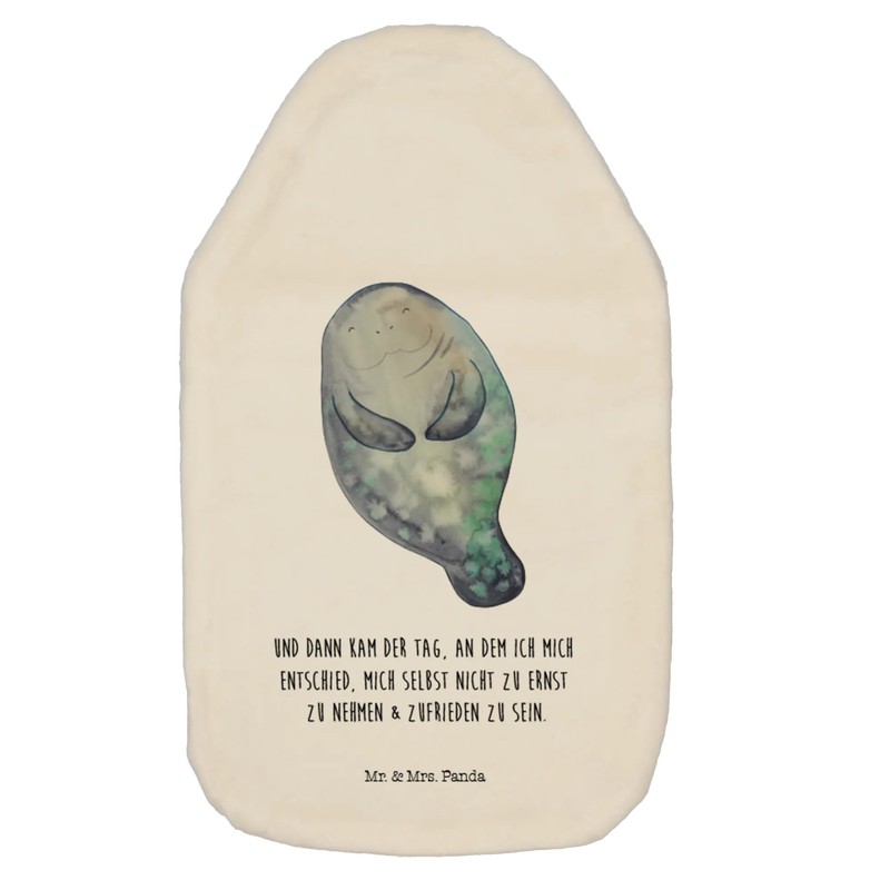 Mr. & Mrs. Panda Hot Water Bottle Sea Cow Happy – Gift, Hot Water Bottle with Cover, Holiday, Sea Creatures, Girlfriend, Hot Water Bottle Cover, Children's Hot Water Bottle, New Beginning, Heat Cushion, Self-Love, Grain Cushion