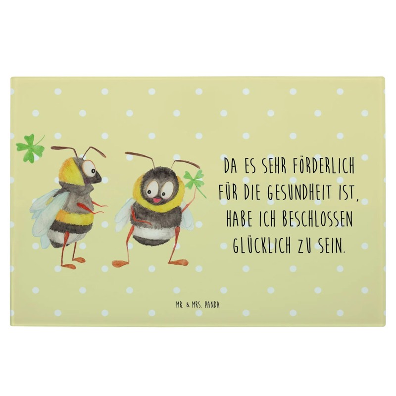 Mr. & Mrs. Panda Medium Glass Chopping Board Bumble Bee with Clover Leaf - Gift, Splash Guard, Animals, Breakfast Board, Saying cheerful, Sweet Animal Motifs, Saying Beautiful, Happy Sein, Happy Wetting