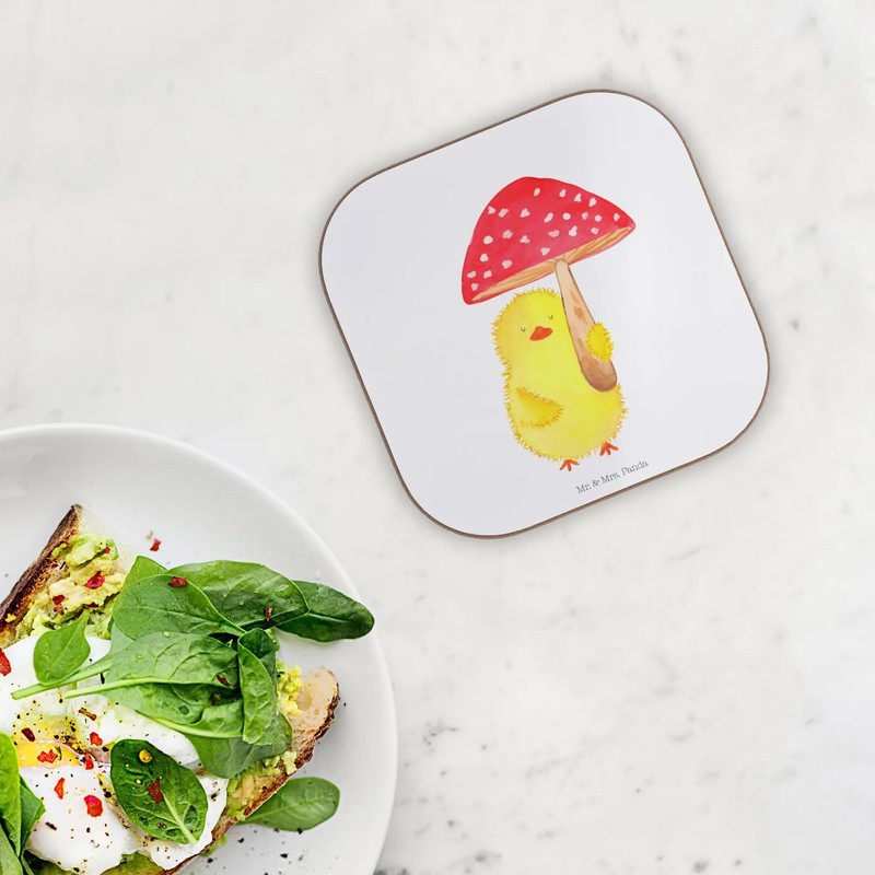 Mr. & Mrs. Panda Square coasters chick toadstool - Easter gifts, Easter decoration, gift, glass coasters, Happy Easter, Easter decoration, Easter bunny, gift for Easter, Easter greetings, drinks underlay