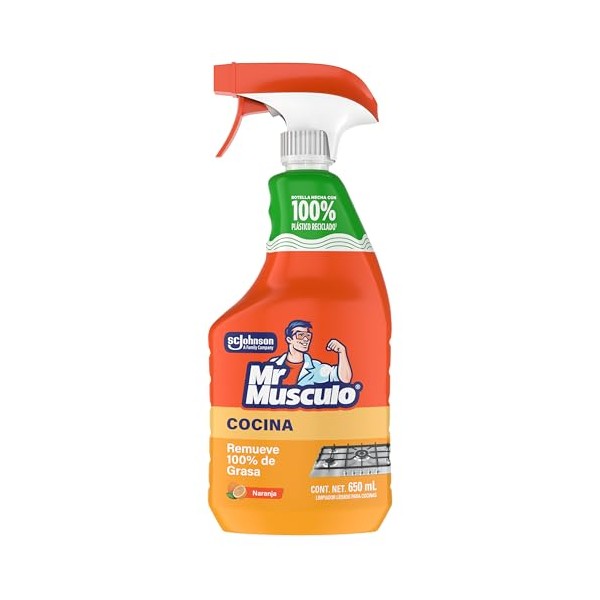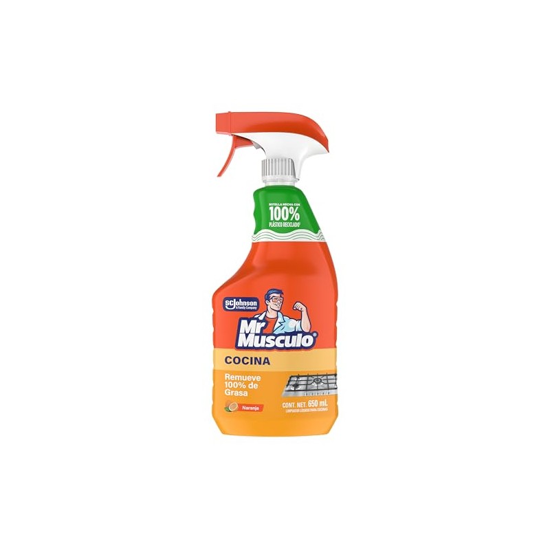 Mr. Musculo Desengrasante para Cocina es fuerte con la grasa y suave contigo. Su nueva y potente fórmula elimina el 100% de la grasa y mata el 99,9% de los virus y bacterias sin olores fuertes. Elimina fácilmente la grasa y la suciedad de muchas superficies de cocina, incluyendo campanas de cocina y estufa, microondas, tanques de agua, paredes, superficies de trabajo, gabinetes y pisos. Esta fórmula le permite limpiar solo rociando y limpiando y también desinfecta. Úselo en azulejos, cerámicas. estufa, campana extractora, mesadas, nevera y diferentes electrodmésticos de su cocina