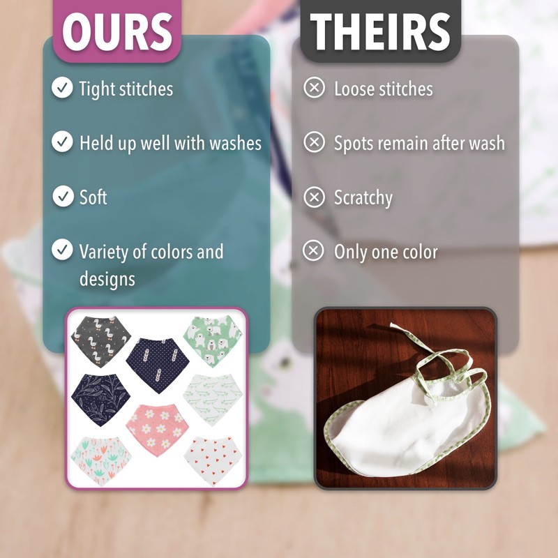 - Our bandana bibs are the ideal accessory to complete any outfit. Featuring our own unique designs, they're trendy and fashion-forward. This baby bib set will be the best baby shower choice for new parents and grandparents.