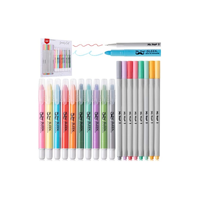 Mr. Pen- Bible Gel Highlighters and Fineliner Pens No Bleed, Pastel Colors, 18 Pcs, Bible Journaling Kit, Bible Highlighters and Pens No Bleed, Bible Pens, Gel Highlighters, No Bleed Highlighters.
