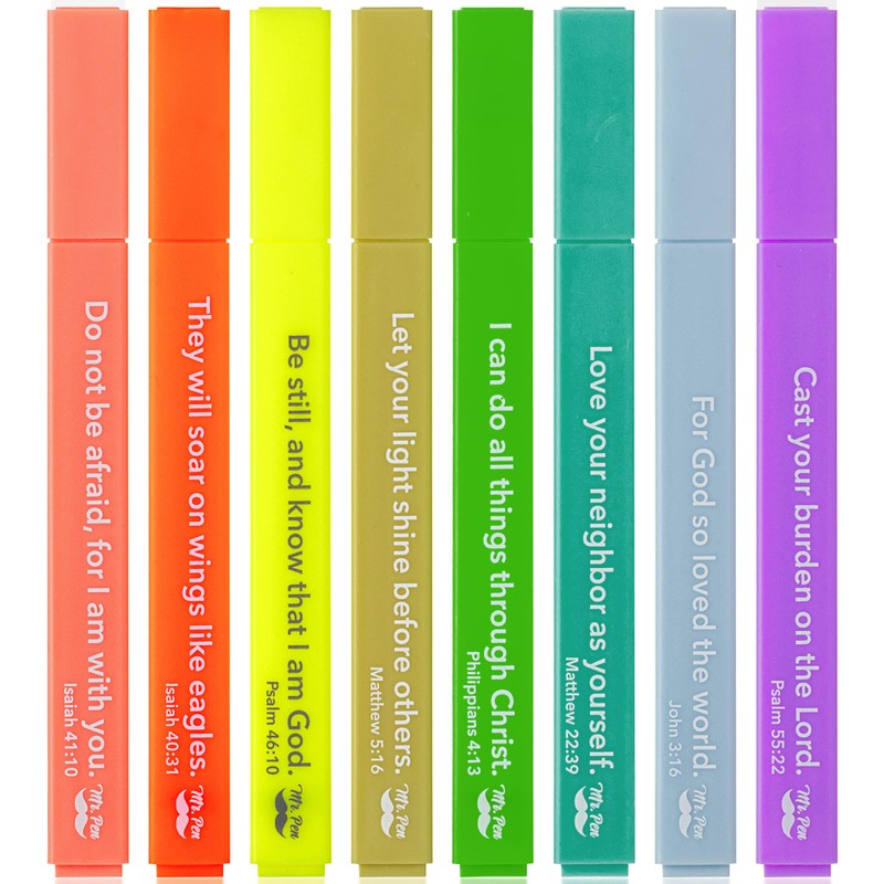 - Mr. Pen Bible highlighters come in an 8-pack, offering a thoughtful and faith-inspired way to highlight important passages during study or reflection.