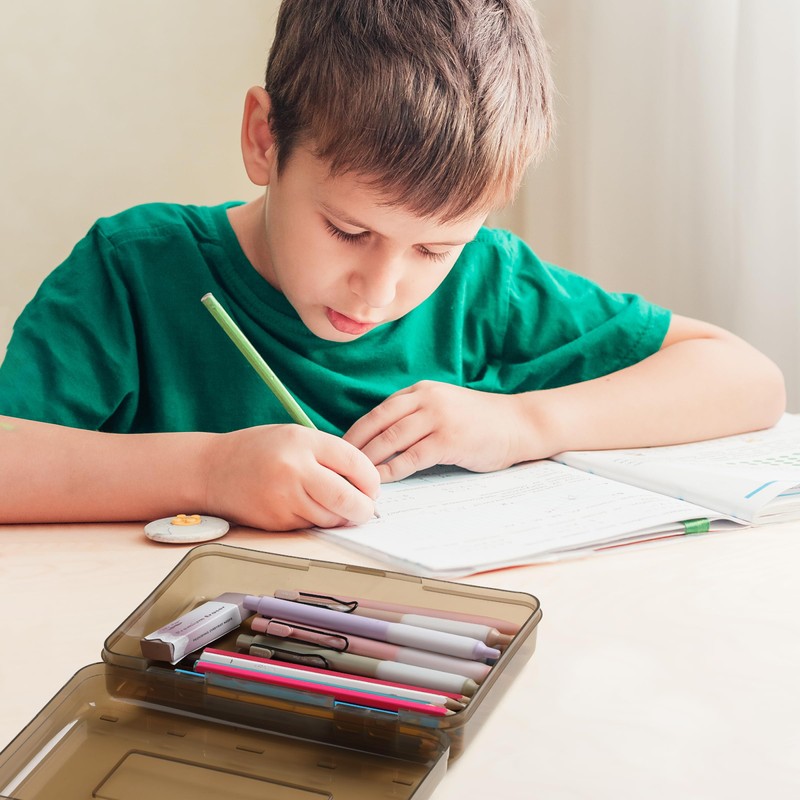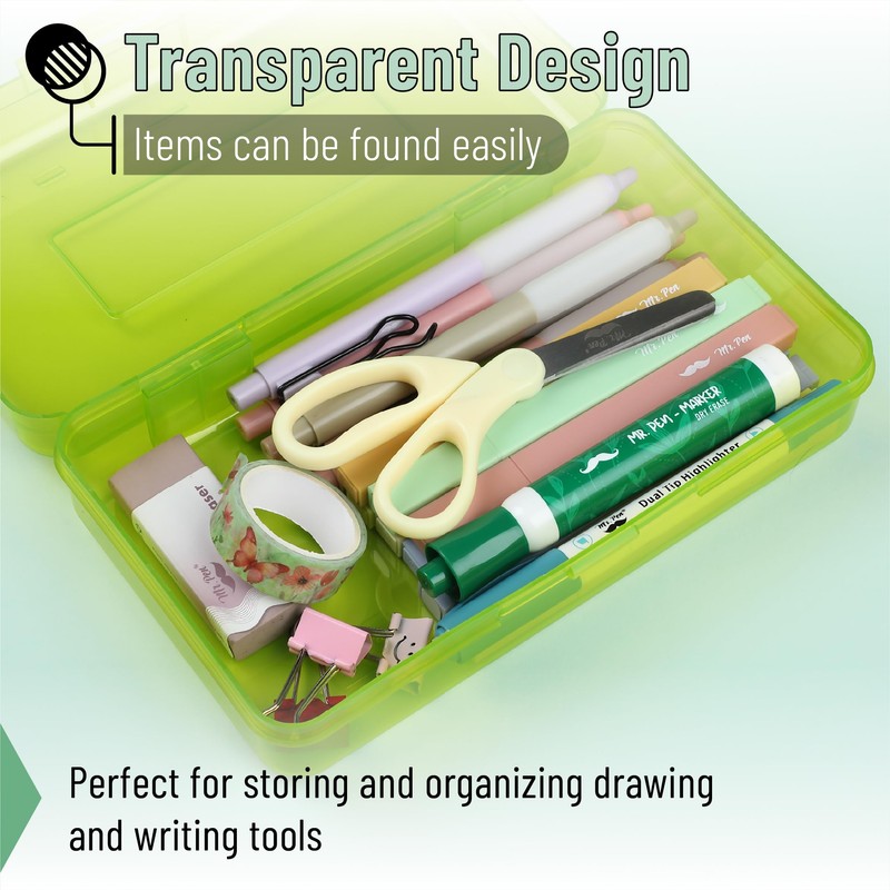 Mr. Pen- Clear Pencil Boxes, 3 Pack, Earthy Color, Snap-Tight Lid, Plastic Pencil Box Organizer, 7.9"x4.5"x2.4"