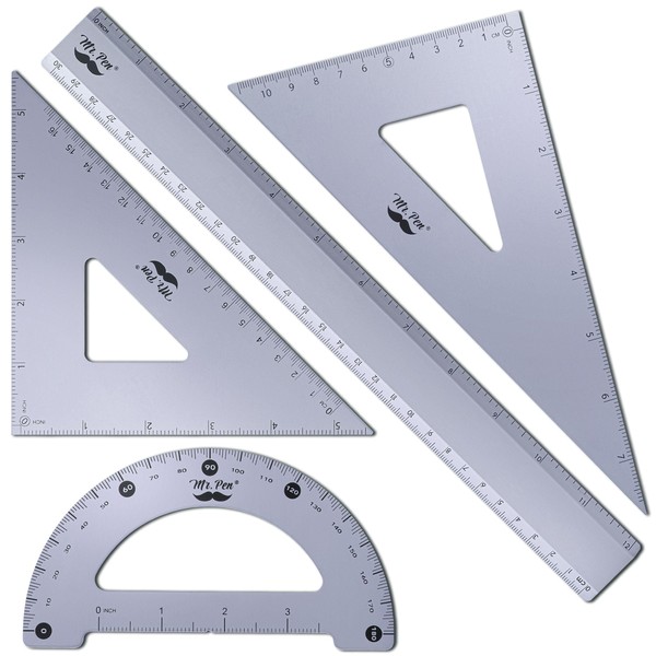 Mr. Pen- Geometry Set, 4 Pack, Periwinkle Gray, Metal Geometry Kit, Triangle Ruler, Metal Ruler, Drafting Triangles, Metal Protractor, Metal Set Square, Drafting Ruler, Drafting Set