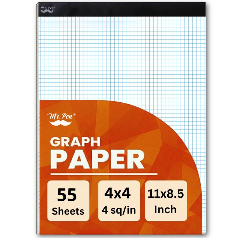 Mr. Pen- Graph Paper Pad 11"x8.5", 4x4 Quad-Ruled Graph Paper, 4 Squares per Inch, Grid Paper Pad, 11 Inch x 8.5 Inch, 55 Sheets, White