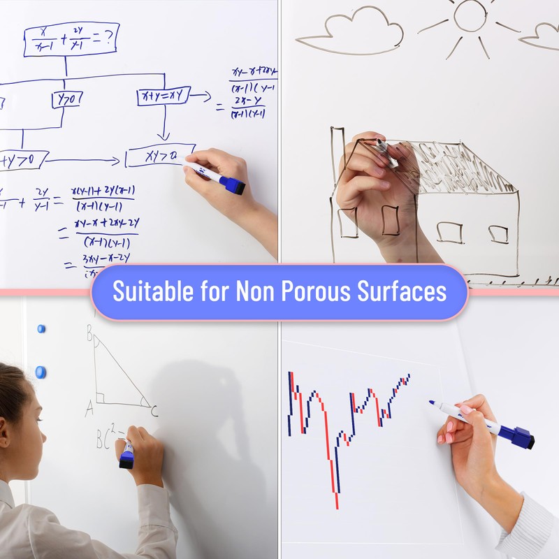 - Each marker features a fine tip, offering precision for writing, drawing, or making detailed notes on dry-erase boards and other non-porous surfaces.