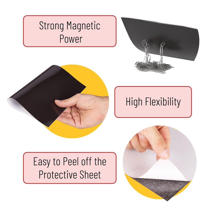 - Mr. Pen magnetic sheets come with strong adhesive, allowing you to stick anything you want, from images to textured materials. Customize your own, beautiful sticker, button, or fridge magnet with comfort.