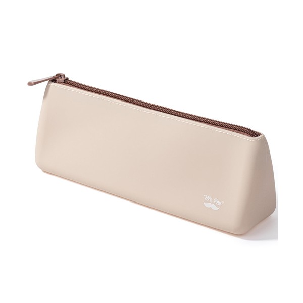 - Mr. Pen silicone pencil case pouch comes in a classic warm beige color with a modern triangular design, offering a stylish and functional way to store stationery essentials.