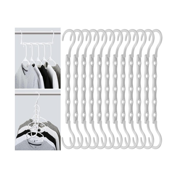 Mr. Pen- Space Saving Hangers for Clothes, 12 pcs, White, Plastic Multi Clothes Hangers Space Saving, 5 Slots, 360° Rotating Hooks