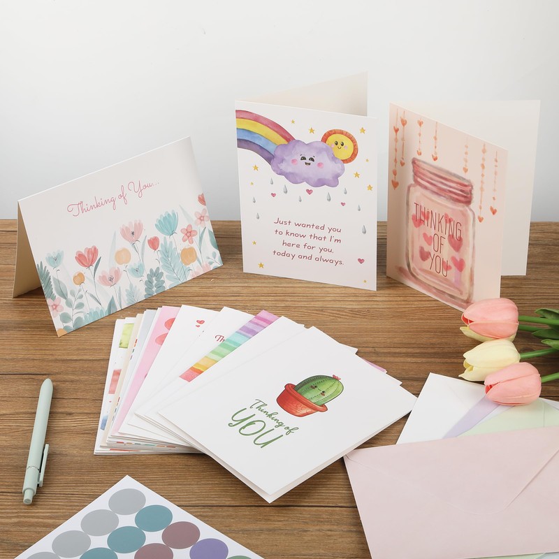 - Mr. Pen offers a set of 20 unique "Thinking of You" cards, each featuring a large 5”x7” design that provides ample space for your personal messages.