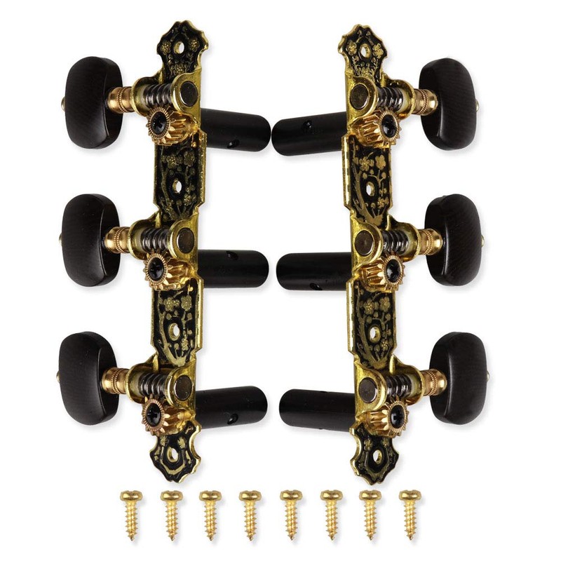 Mr.Power Guitar Tuners Machine Heads 3+3 Set Tuning Keys String Pegs for Classical Guitar (Short Black, Black Button)