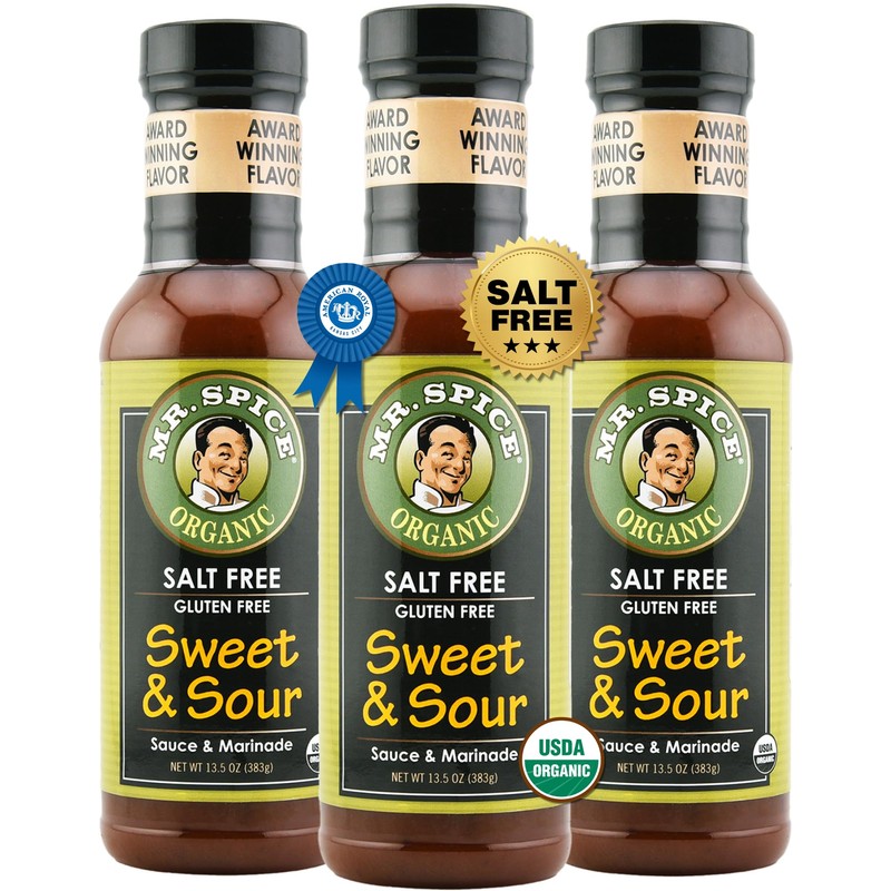 Mr. Spice Organic Sweet and Sour Sauce, Salt Free Sweet & Sour Dipping Sauce (5 mg/serving), Gluten Free, Low Sodium Sauces for Marinade and Wok, No Salt Award-Winning Flavor, 13.5 Ounce (Pack of 3)