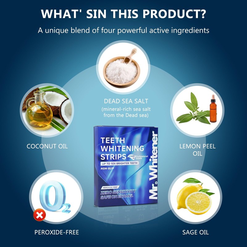 Mr.Whitener Teeth Whitening Strips offer an effective solution for anyone seeking a brighter, whiter smile. Our advanced non-peroxide formula ensures that you achieve rapid and visible whitening results. Ideal for individuals who want to enhance their appearance without complicated procedures, these strips provide an easy at-home whitening option.