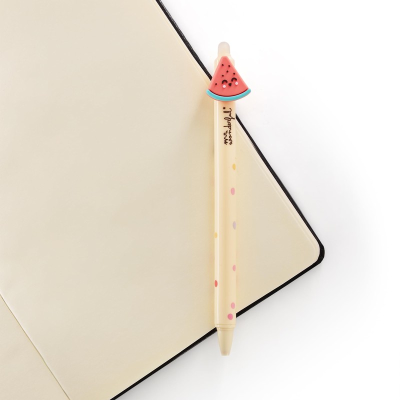 Mr. Wonderful Erasable Pen - Watermelon - Erasable Pen with a Watermelon End. Ink Colour: Blue