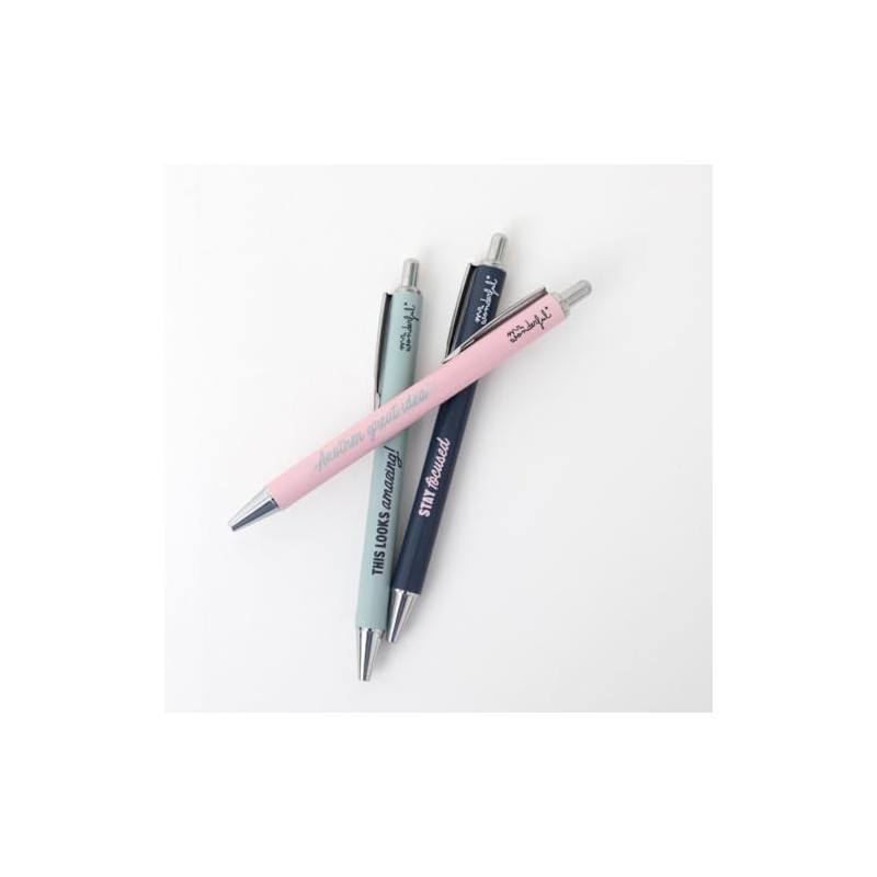 - Set of 3 high quality metal ballpoint pens each with a fun message printed.
