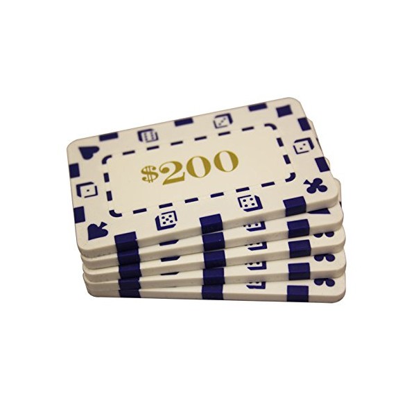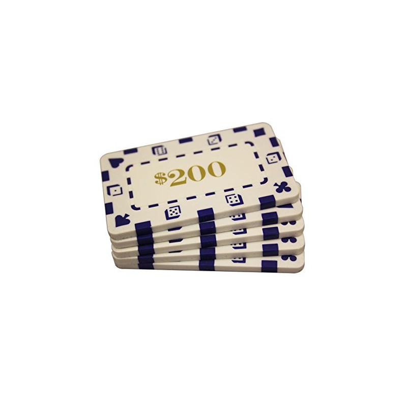 MRC 5 Pcs Rectangular Poker Chips Plaques $200 White