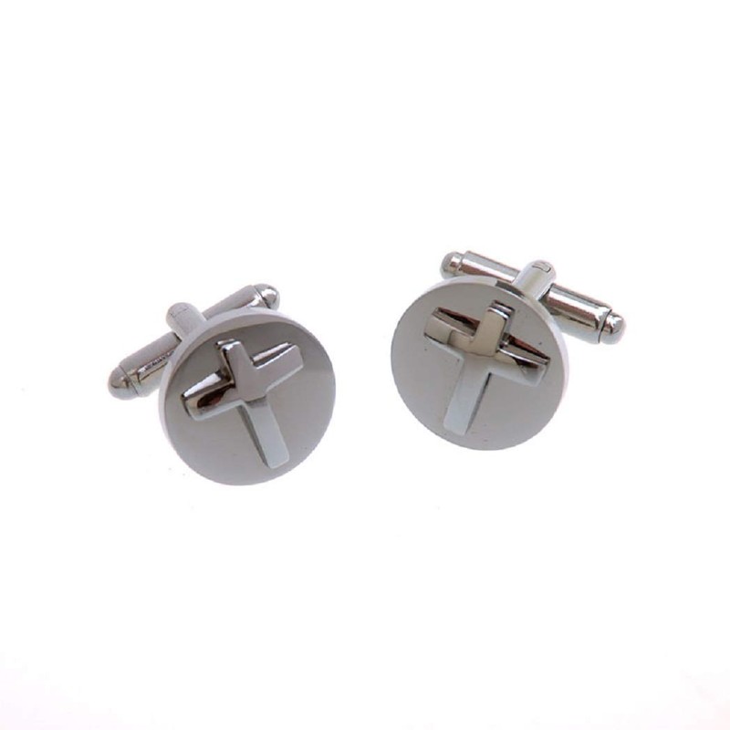 MRCUFF Cross Round Raised Pair Cufflinks in a Presentation Gift Box & Polishing Cloth