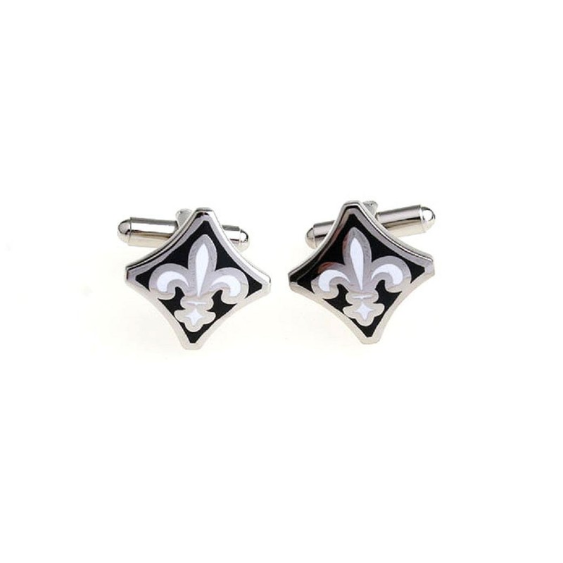 - Fleur De Lis Black White Cufflinks with a Presentation Gift Box