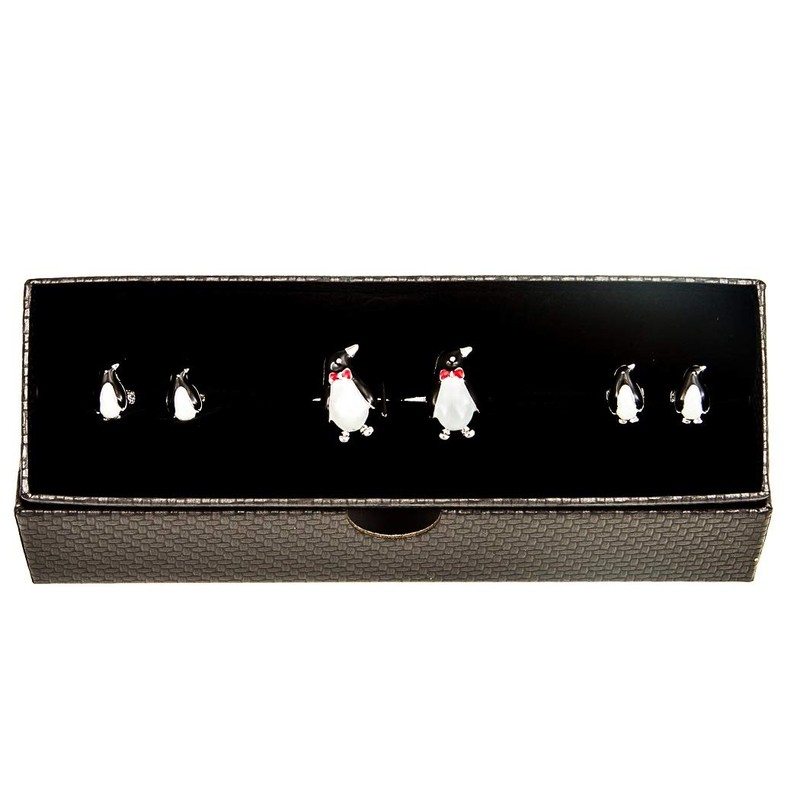 MRCUFF Penguin Black White Tuxedo Cufflinks & Studs Formal Set in Presentation Gift Box & Polishing Cloth