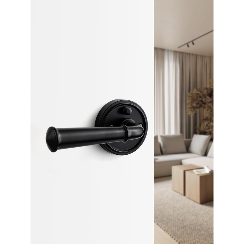 MRML Black Privacy Door Handle, Interior Bedroom Bathroom Black Door Lever, Aluminium Alloy Handle Lever, 1 Pack