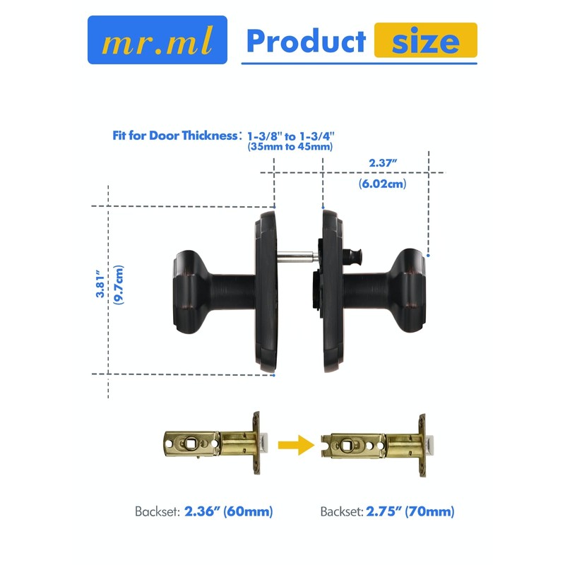 • Easy Installation: The door knob set is universal for both left/right handed doors, fit door thickness 1-3/8" to 1-3/4"