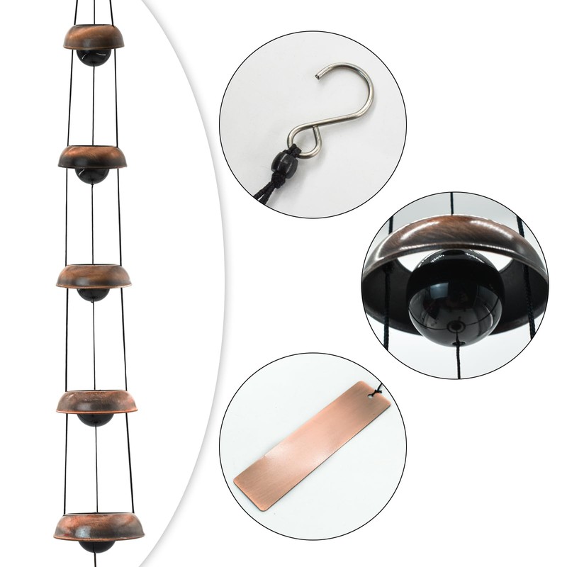 - BEAUTIFUL DESIGN: Metal wind chimes are designed with 5 layers of bell and 3 strands for balanced hanging. Unlike traditional wind chimes, it has openings on both ends and a large ball in the center. When the shortbook or chime is in the wind, the string pulls the top bell together and makes a very clear and wonderful sound