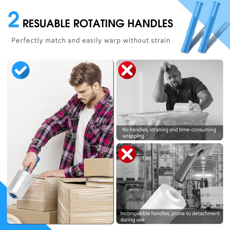 - EASY TO USE: MROCO 5-inch mini-size stretch film comes with 2 reusable rotating handles, which can be easily controlled with one hand, making packaging more flexible and convenient.