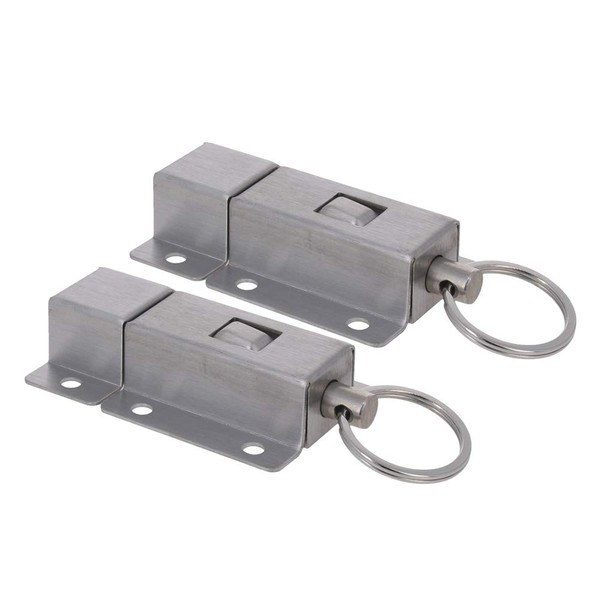 MroMax Door Barrel Bolt, Stainless Steel Security Push Button Spring Loaded Latch 2Pcs