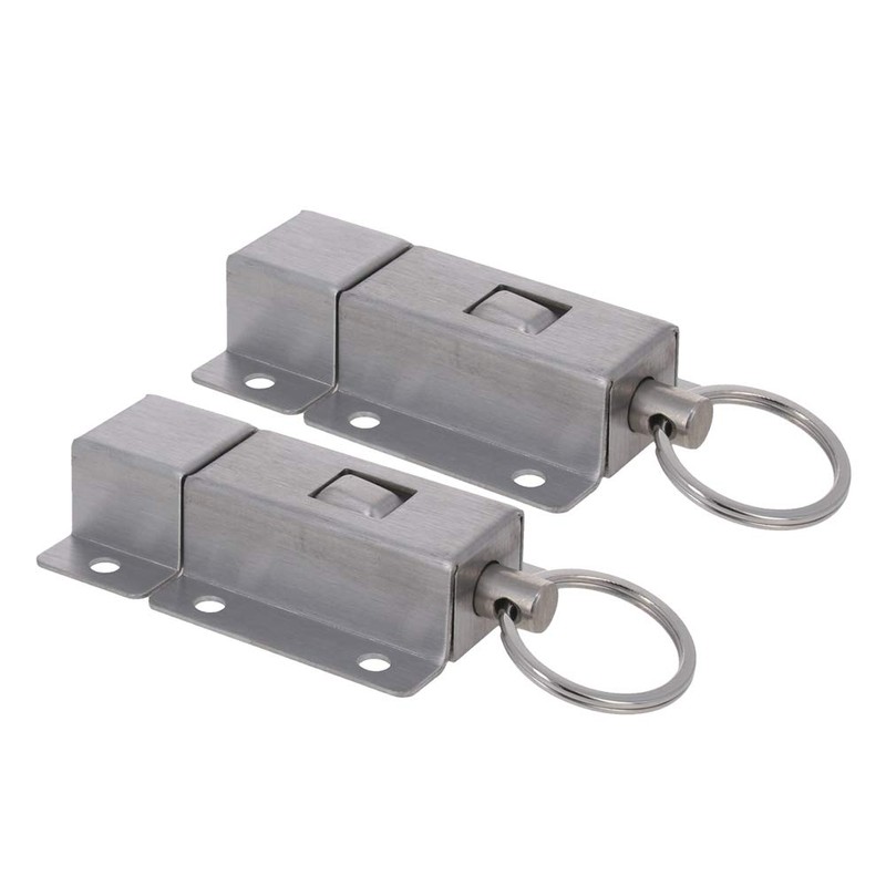 \- Constructed from stainless steel material,it's sturdy and reliable enough for residential daily using. \- The product consists of two parts, a body with a spring pin and a metal head for fixing. \- Structure instruction: Press the button, pop-up the lock; pull the black button to lock it. \- Wonderful replacement for replacing your old or damaged one. \- Ideal for use on cabinets. Specification: Material: Stainless Steel Finish: Vibration Polishing Main Body Size: 60mm x 37mm x 15mm / 2.36" x 1.46" x 0.59" (L*W*H) Package Content: 2 x Barrel Bolt Latch