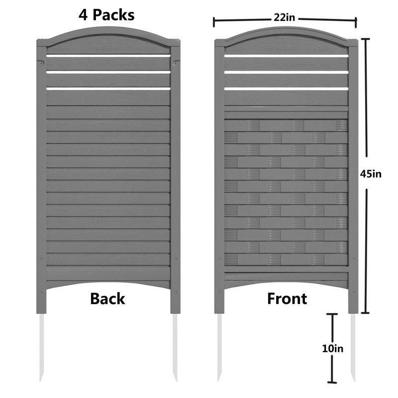 - PRIVACY FENCE SIZE - 45" (H) x 22" (W) Per Fence Panel for Outside, Garden Privacy & Protective Screens Set consists of 4 Resin(HDPE) panels,Decorative fences for covering the pool pump, trash cans, A/C unit in the garden.You can also add some artistic pendants to the panel,this will enhance the aesthetics of the covered area.