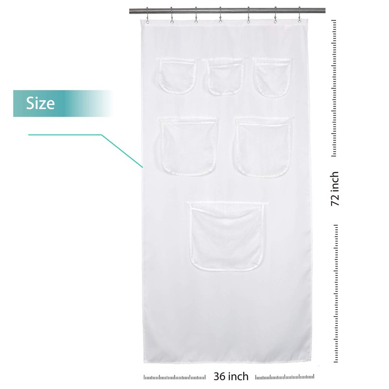 - Well Made: Stylish 36x72 inches shower curtain with 6 pockets are made of high quality cloth, look nice and clean. The mesh pockets designed are sturdy and organized which works good to hold stuff while in the shower