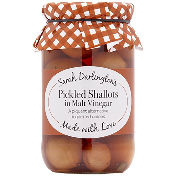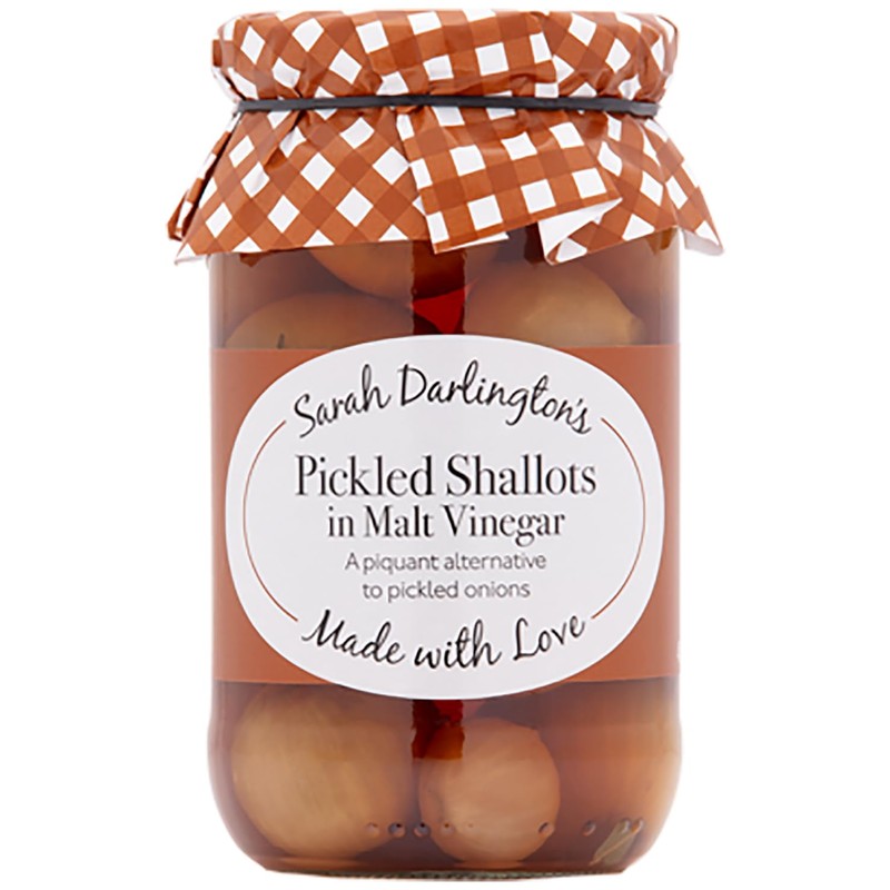 - Small and crispy, these tasty shallots are pickled in malt vinegar and a mixture of coriander, bay, mustard seeds, cloves and black pepper corns. Perfect with cold meats, salads, quiches and sausage rolls.