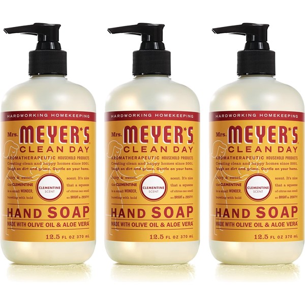 MRS. MEYER'S CLEAN DAY Hand Soap, Clementine, Made with Essential Oils, 12.5 oz - Pack of 3
