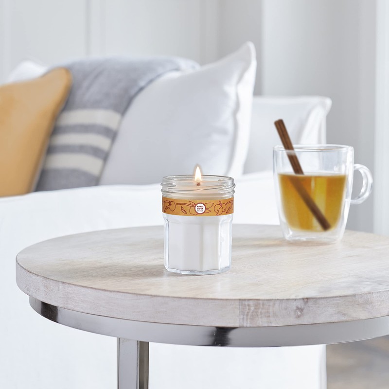 - Orchard-fresh Apple Cider scented candle has a sweet and crisp scent, with a little touch of spice