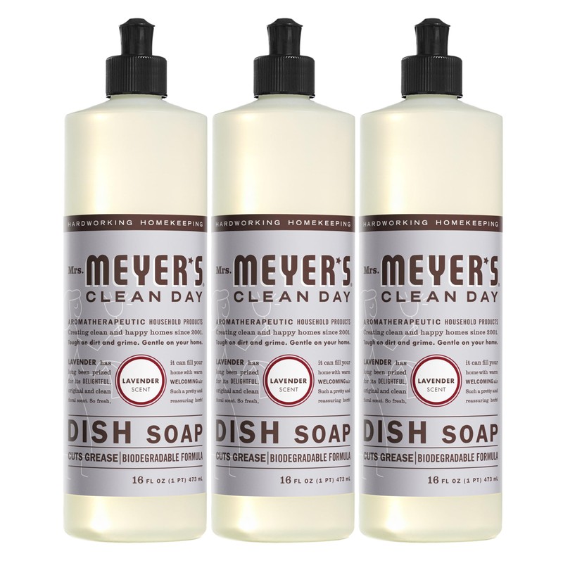 MRS. MEYER'S CLEAN DAY Mrs. Meyer's Liquid Dish Soap, Biodegradable Formula, Lavender, 16 fl. oz - Pack of 3