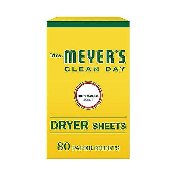 MRS. MEYER'S CLEAN DAY Dryer Sheets, Fabric Softener, Reduces Static, Infused with Essential Oils, Honeysuckle, 80 Count