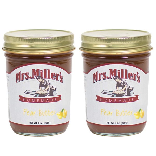 - YOU WILL RECEIVE: 2 - 9 oz Mrs. Miller's Amish Homemade All Natural Pear Butter in your purchase. SHIPS IN A CORRUGATED BOX To Help Ensure Freshness, Quality & A Safe Delivery