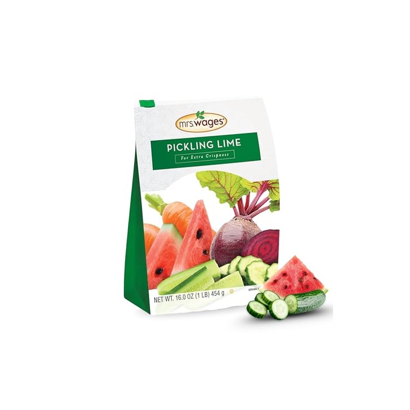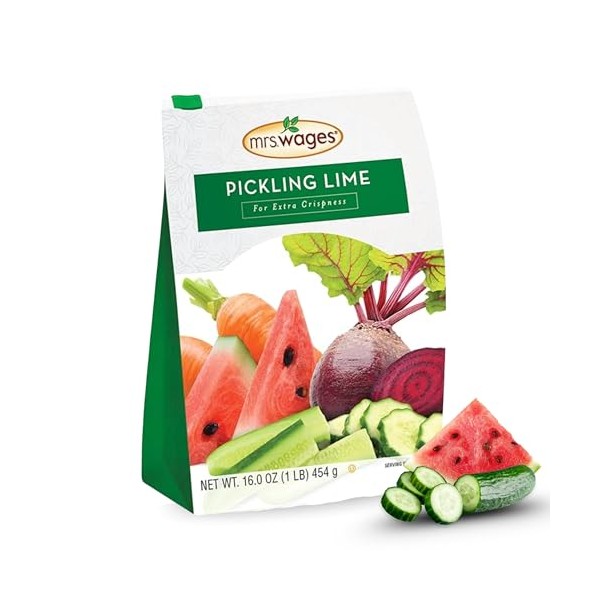 Mrs. Wages Pickling Lime, Easy-To-Make, Crispy Flavorful Pickles, Tasty Creations, Long-Lasting Resealable Bag, Variety of Uses, 1 lb Resealable Bag