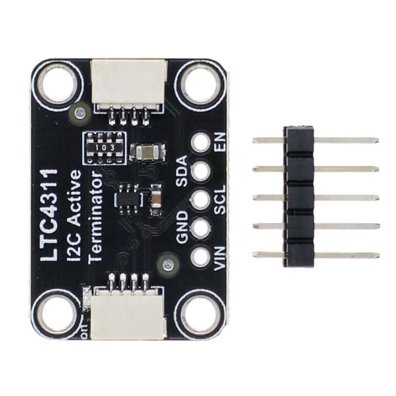 I2C stands for Inter Integrated Circuit Communication and is suitable for short distance communication on PCBs or components. But hey, we're engineers and we like to push the limits of technology, right? So why not try running I2C over cables that are one meter or even longer? If you try this, you will soon find that the length of the cable increases the capacity and resistance, which slows down the open-drain-pull up speed used in I2C and makes it difficult to use a clock frequency of 100KHz+. You can try to slow down the I2C clock frequency to 1KHz. Alternatively, you can use an active LTC4311 terminator like this!