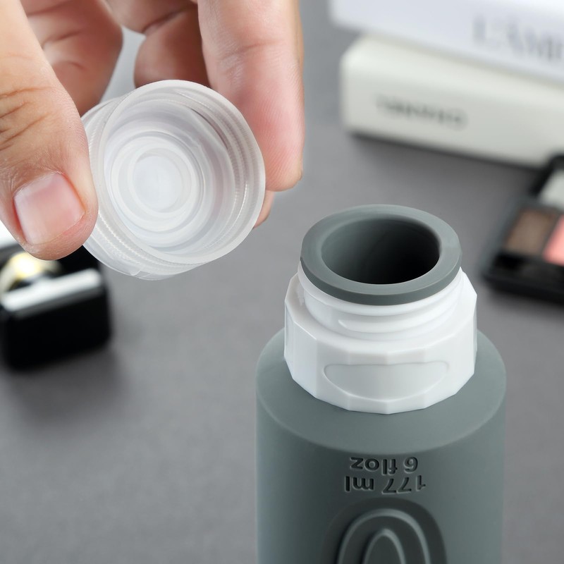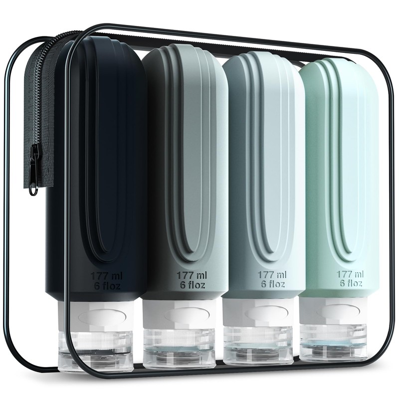 - Oversize 6oz travel bottle: Featuring a PVC toiletry bag, these travel-sized silicone bottles are perfect for storing and dispensing your favorite shampoos, lotions, and other liquids. Designed for convenience and durability, this travel set is a must-have for all your adventures.