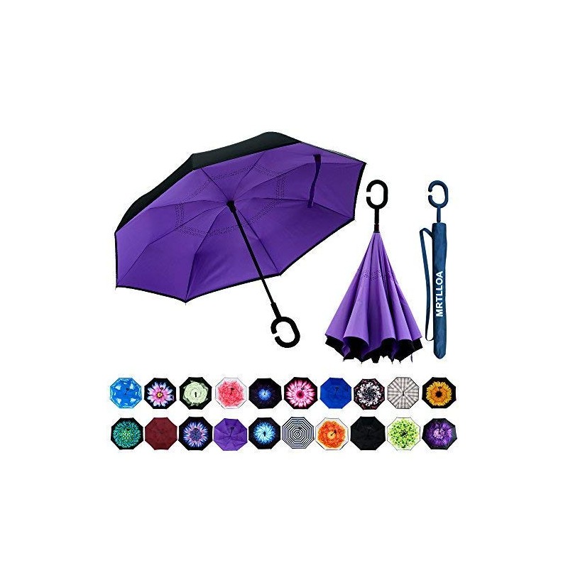 MRTLLOA Double Layer Inverted Umbrella with C-Shaped Handle, Anti-UV Waterproof Windproof Straight Umbrella for Car Rain Outdoor Use(Purple)